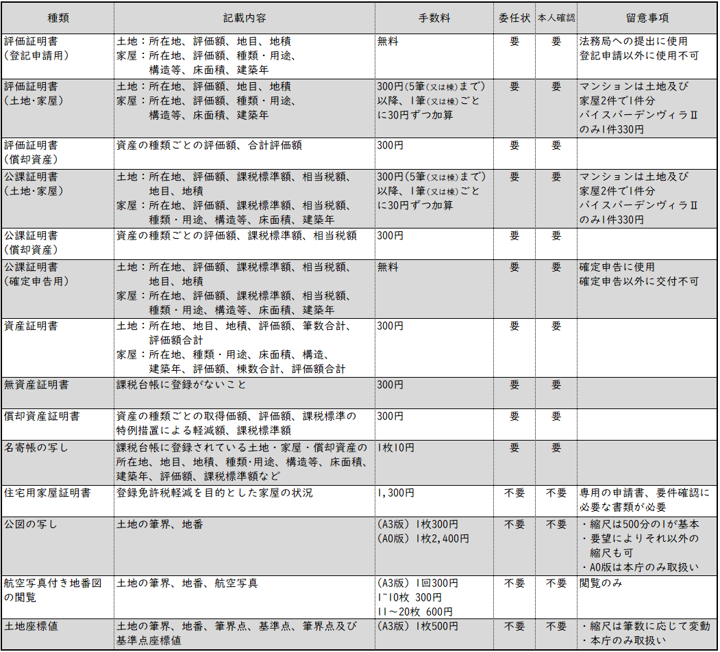 固定資産税(土地・家屋・償却資産)に関する証明