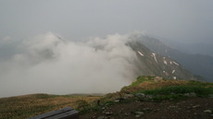 6月8日、俎嵓(まないたぐら)にガスがかかっています。